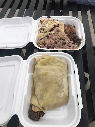 The food: We had the jerk chicken- not super spicy, rice and peas were really good, coleslaw was fine but a little hard to eat due to the size of the pieces. And chicken roti- roti shell was good and the chicken and potatoes inside were cooked perfectly. Flavour was good. Hot sauce was served with our meals but it was more sweet than spicy.