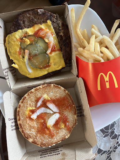 Je dois dire que mon expérience au McDonald’s de Châteauguay m’a profondément déçu et m’a laissé un goût amer. En tant que client régulier, je suis habitué à la qualité constante de ce restaurant, et j’apprécie normalement chaque détail qui fait des burgers de McDonald’s une valeur sûre. Cette fois-ci, cependant, les choses étaient bien différentes, et je me suis senti trompé par une erreur qui, pour certains, pourrait sembler insignifiante, mais qui pour moi a complètement gâché mon expérience. Tout a commencé lorsque j’ai ouvert l’emballage de mon burger avec anticipation, m’attendant à retrouver cette combinaison parfaite de saveurs et de textures qui fait que l’on revient encore et encore. Mais en prenant ma première bouchée, j’ai remarqué un détail étrange : le goût semblait déséquilibré, comme si quelque chose manquait.