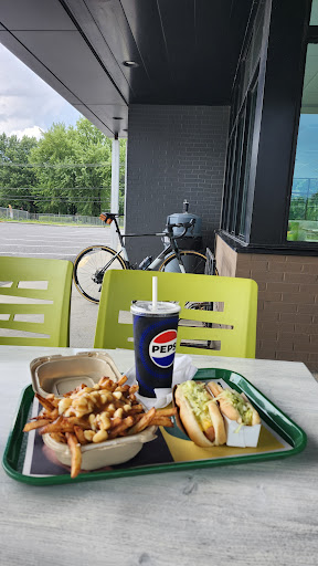 Don't go if you are expecting the same Quality as the LaFleur locations in Montreal. Everything was off in taste and delivery, I normally the number 2 all dressed. Comes with 2 toasted hotdogs with fries and a soda. I knew something was up based on the lack of staff attending and lack of customers. My order took an extremely long time, they messed up my order with the customer before me who ordered something similar, so I waited at the counter and they asked me again for my order after I paid 20 minutes earlier. The hotdogs were overcooked (burnt and split) and the fries tasted off (like they hadn't replaced the fryer grease in quite some time). Had an ill feeling...