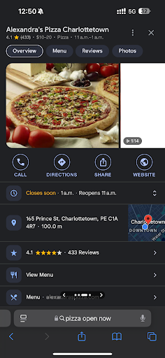 Had a very bad experience at Alexandriaâs. I ordered a pizza, a garlic fingers, and 6 donair egg rolls. After waiting for over 45 minutes and seeing folks that ordered after me receiving their food; I went up and inquired as to why my food was taking so long. It turns out they gave my food away to someone else. I asked them how this was possible and they said they had called my name many times. However I was near the cash and did not hear my name called once. They argued with me as though it was somehow my fault. I asked them how they want to fix it and they told me they could try to remake it. I asked if there was anything they could do to make up for the mistake and they laughed in my face and told me they could offer me extra donair sauce. This was quite insulting and I decided to just get a refund at this point. I had to argue with them for several minutes just to get a refund for my meal (which they gave away). Itâs a shame because Iâve always held Alexandriaâs in a high regard and have recommended it to many friends in the past. But this experience has soured it for me and I doubt I will ever go back. Very...