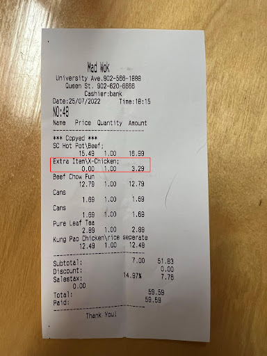 Secondly, the price was very weird, I ordered one hot pot with beef and chicken. But why the front desk girl charged me extra CA$3.29. From the price list, it should be CA$1.5 or CA$3.0 (if she misunderstood). This was calculated by myself. The front desk girl only gave me credit card copy not order copy. When I asked for that, she printed out reluctantly and another Indian guy said that was system problem, even they told me their boss’s cellphone number and let me contact by myself. I was astonished by that. I did not know why she worked here. She was very disgusting because she destroyed my day and I felt super angry tonight.