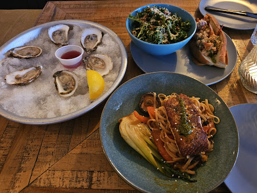 The $28 salmon dish was another disappointment. The salmon was crispy and fine, but the fillet was small, and the pasta was bland—not sure what chef is trying to achieve here? The $4 oysters were the only tasty part of the meal, but they were surprisingly small, especially for PEI, it also had only 2 options for dipping -vinegrette and lemon- even Toronto restaurants serve larger oysters at the same or lower prices. Like, come on, this is PEI! Such a huge let down for our very first meal in a so-called city of foodies and luscious sea food. (For Oysters- Julio's oyster is the best in pei)