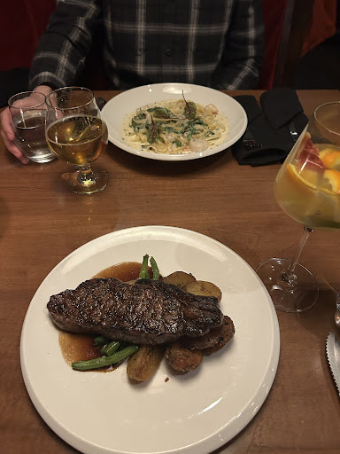 Read moreFirst time eaters. Im giving this a 3 but its more like a 3.5 - not quire 4. It was a nice enough meal for a pricey steakhouse. The good - lovely intimate seating, top notch service, very fresh oysters, solid menu and wine list, very good cocktails, pleasant cheese selection from local producers. The not so good - I like a pricey steakhouse and dont mind paying for top quality - but if you are going to offer me a $125 dollar cast iron chateaubriand for 2 - it should be a little more "flash" than just placing your cool rested red meat on a cold cast iron display pan. If the cast iron doesnt play a part - then just a nice serving tray please. It was a properly cooked piece of meat - but it lost temperature too fast and having it presliced before it arrives at the table didnt help with that either. Also the plates that come with said meat should not be lukewarm at best - with lukewarm and congealed garlic mashed and lukewarm zucchini. Bernaise sauce was cool - so not very pleasant to enjoy with red meat. The interior while cozy is bordering on becoming very dated and drab. The paintings in our area were just gross - splatters of brown and black that looked more like wood shop accidents than art on a brick wall with dusty velvet curtains behind us. Dusty might be the best descriptive term you could imagine for the experience. I think this place could use a shakedown and it would notch up the overall quality...