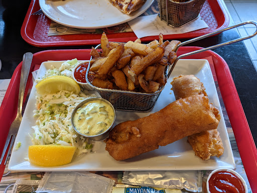 We were 6 in our group. 2 ordered the fish and chips on the table d'hôte that came with a soup. 1 ordered a pizza, 1 ordered the chicken and 1 ordered hot dogs and fries. The fish had a weird spice that no one liked but the soup was good. The chicken was dry and the pizza tasted like it came frozen. The hot dogs were ok and the fries were really good and home made. The staff was really nice and the place was clean so it gets stars for that. We also had no idea it was a cafeteria style where you order your food and carry it to your own table and were hoping for a sit down type restaurant but that is our mistake for not checking but good to know if you want a sit down restaurant,...