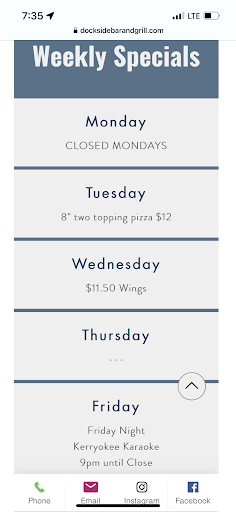 Read moreNormally I love this place, however after tonight i will probably never go back or recommend anyone to go there. My wife and i went there for a paint night and we arrived shortly after 5pm. We ordered drinks then food around 5:15, our appetizers arrived In a timely fashion however we didn't get our entrees until 6:30. When our food finally arrived the fish was nasty and over cooked, my wife had a hard time cutting it with a knife, my pizza had toppings on it that I had asked to be removed at time of order. It took the manager 15 minutes to come and talk to us after we complained about the food quality, he essentially was full of excuses and stated they were busy tonight (not even close to how busy they are during the summer.) I should add that when we arrived and ordered food there was us and 5 other couples in the bar and by the time we received our food people who came in 30 minutes after us were already eating. So again I will probably never go back to Dockside again and I won't be recommending it to my...