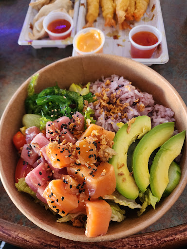 Ā Ā Ā Read moreMy partner and I came here for dinner this evening. The food was decent, well priced for what you get. We started with the gyoza and shrimp tempura (reminiscent of frozen Costco dimsum), and I got a bubble tea. The bubble tea was well made & delicious. We each had a bowl, myself, the Tuna & Salmon Poke Bowl, and my partner, the Chicken Teriyaki Bowl. Serving size was about average, my only complaint was that there was a garden salad in the poke bowl? Usually, edamame beans, diakon, or shredded carrots would accompany a poke bowl, but this was lettuce, tomato and cucumber, which threw me a bit and took up a lot of the space where rice usually would be. Not a typical poke bowl. A good place to go for a quick, decent...