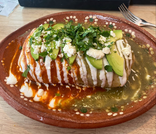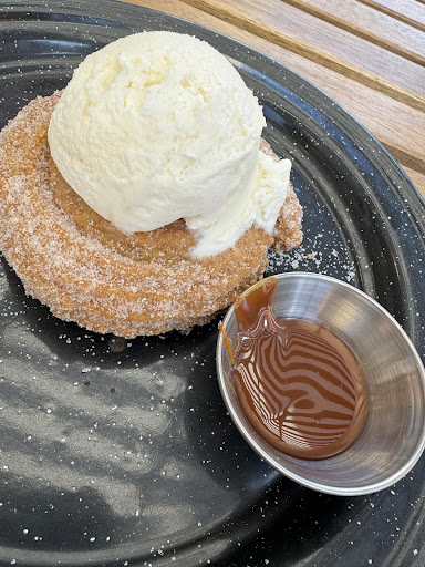 Atmosphere - This was in a cute location and we randomly decided to stop there as we were waiting for another place to open. The inside seems a bit small so we opted for outdoor seating. I did hear the server tell another customer they were in the process of getting heaters. This will be nice as even though it was a nice day the wind and the shade from the other building made it quite chilly. Service - Our server was a young male who did his best. The items coming out was a bit slower than I am used to but he was jovial and apologetic and kind and that goes a long way. Food - The chips and flight of salsa's was a nice treat and very appreciated. They were what you would expect. We started with the Toquitos Con Mole and they were so good, they were crispy and moist and topped with deliciousness. We all got the same thing, The Famous Taco Loco. My fiance and I got ours normal but my daughter who has a food aversion to sauces requested hers without any other the sauce that comes on it. They did mess up on that and give us hers unsubstituted and my fiances without the sauce but the server was quite attentive and apologetic and was able to fix the error quickly. They were fairly good, definitely think more sauce from my standpoint to elevate the flavour profile a bit more. We got the Churro Icecream Sandwich to end the meal and they were very gracious in assiting us with splitting one for my daughter and I as we cannot eat a whole one to ourselves after the meal. They were able to make it open faced which was helpful and they were gracious in doing so. I will say my fiance attempted to eat his unaltered sandwich and he ended up having to open it up and eat it open faced as it was definitely too big even for his mouth and quite the messy meal when it gets squished from biting. However the price of caramel and guac are way overpriced from my perspective. The caramel just tasted like normal caramel and while I did not have the guac I think it is about a dollar too much even a dollar seventy five too much. Other than that though it was good and the whole meal a grand affair. Pretty good food but excellent top...