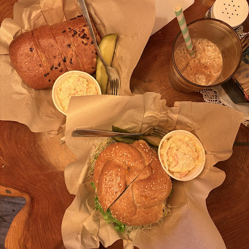 Read moreThe yellow deli is a vibe - fiddle music playing, very eclectic wooden interior and is known for being run by a cult. However, I wouldn’t let that stop you from visiting and here’s why. We ordered the Deli Rose, Turkey Rancher and Iced Chai Latte. Their sandwiches were probably one of the best sandwiches I’ve had. Generous with the toppings ( a real mouthful) and does a good job of displaying how fresh, simple ingredients can taste great. I believe it’s farm to table, or they at least source most ingredients locally. The Turkey Rancher was a lighter, more refreshing sandwich as it’s packed with veggie - this was my favourite. However, if you like a meaty sandwich, Deli Rose is definitely the way to go. I think the bread was a game changer, it was soft and fluffy, but also composed itself so it didn’t fall apart as you were eating it. It was just well rounded, decent portion size and left me very content. As for the Chai Latte, I liked that as well. Not too sweet, definitely doesn’t taste like your typical coffee shop Chai Latte, but it’s different in a good way. I can’t explain the flavour, but apparently it’s one of their most popular drinks.