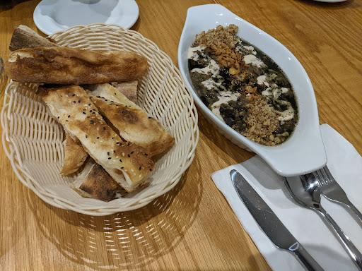 We were provided a tea that came with a cube of sugar to mix in. My wife mixed in the sugar in hers, while I drank mine without. Both styles were good. Tea was mild and not over steeped. Food wise, started with the Halim Basemjan, which is a mixed of eggplant, meat and lentils in a savory sauce. Very pleasant and quite tasty. Came with a bread that was similar that I thought was similar to a focaccia. A nice dish to mop up with the bread.