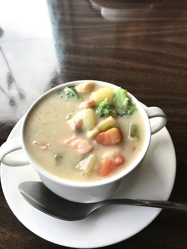 Loved everything I ordered the matcha latte was nice and warm not to sweet. The cream of broccoli soup was also very flavorful, but my favorite for sure was the Creamy Shrimp crepe it filled a whole plate the creamy sauce was delicious and the shrimp were medium prawn size were very yummy.