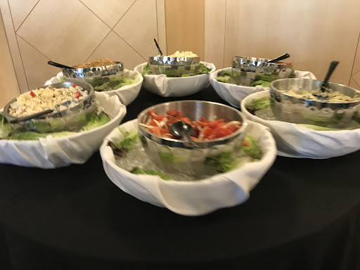 Cold food consists of a salad bar - romaine, leaf lettuce, your hardier veggies and a variety of dressing and toppings to customize which is nice, bean salad, cold noodle salad, coleslaw, asian style salads, devil eggs were nice to see but too bad they were bland.