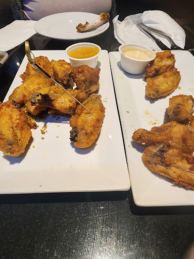 When our wings arrived they were almost completely dry and lacking of any sauces (all wet wings). We tried to eat a few but were not great without much sauce so we waited and waited and waited for our server to reappear (she didn’t) so I flagged down another nearby server and very politely explained and showed that the wings were very dry and asked if they could remake our order. She agreed that they looked very dry but said that all she could do is bring us some dipping sauces to help. We politely declined and tried to eat another couple wings and I just couldn’t. I again waited for a server near us, couldn’t find one so I grabbed our platter of wings and brought it up to a group of servers near the kitchen entrance.