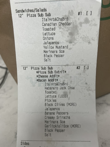 Ordered two pizzas subs and they mixed up the subs, added sauces to both subs, cheese on the wrong ones, onions on what looks to maybe be mine? When they were for my sister. added banana peppers to both and my sister is allergic to bananas peppers so she couldnāt even eat it. I dont even know whoās subs whos because they added my things on to the one Iām eating and some things I added to mine on hers?? You need to actually READ what youāre given because my sister could have died and we donāt have an epiPen. if there was an option for zero stars, I would have given it. $46 for what? As you can see in the pictures thereās garlic and Sriracha sauce on both and there aināt...