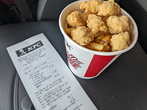 They no longer use the 11 herbs and spices. I don’t know what they use if anything at all but I’ve never been so disgusted with their chicken and gravy. It’s by far the worst $55 I’ve ever spent in my life on fast food. Even the dark meat was super dry I dipped it in the gravy. And for the first time in my life I actually added spice because it tasted like presidents choice plain brown gravy. Apparently they don’t longer want to sell tasty chicken to anyone and want to close their business because KFC will no longer get my business or any of my family’s business. And with social media the way it is today it’s not hard to close a business especially when you look here and you see the really bad reviews of a place like this. The only thing I can say about this particular KFC was the lady that serve me was pleasant and that’s it. What’s sad was I went through there at dinner time and all the fast food places had lines of cars and KFC was empty, I thought it was closed even though I seen...