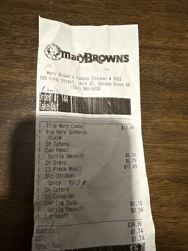 Read moreThis is the second time that my friend have had a bad experience here. The first time, there was a Big mistake with skip the dishes......we got someone else's order and neither skip not Mary browns wanted to fix the situation. We even offered to come there and pick up the food.....Mary browns said we'd have to pay again. So in our frustration we ended up eating the food brought to us. It was cold and soggy.