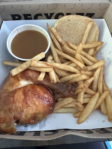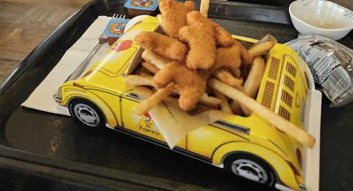 Portion sizes? Laughably small. I got three underwhelming chicken strips that looked so depressed they shouldâve come with a therapist. Fries? Unsalted and bland. Bun? No clue what it was but it was sloppy, bland, and flatter than my enthusiasm after stepping on that sticky, uneven floor past the entrance.