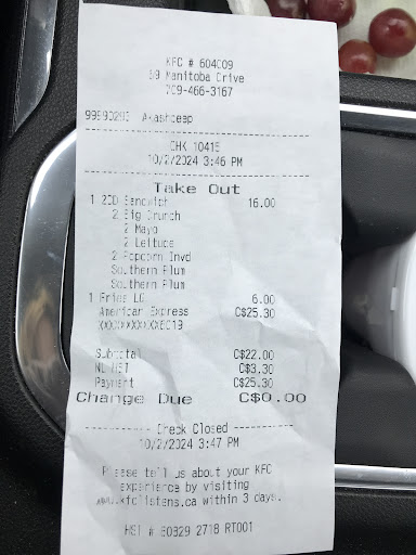 Read moreThe KFC of today, isn't the KFC I grew up with. The chicken was plane, salty and looked undercooked, it wasn't, it just looked that way, but chicken should be brown at least. Nuggets, and popcorn chicken looked all the same as the chicken, pale and unimpressive and salty. Marry Browns is right across the street. I recommend you go across the street. A completely different...
