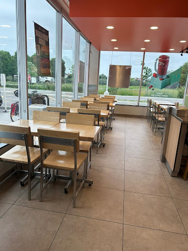 For great burgers, excellent service by the entire staff, fast service, and convenience, this is the place! And added benefit is that if you use the A& W app, they often run $2 burgers which comes to $2.10 taxes in CDN ! Atmosphere minus 1 star because the restaurant is attached inside to a gas station. There is seating available inside.