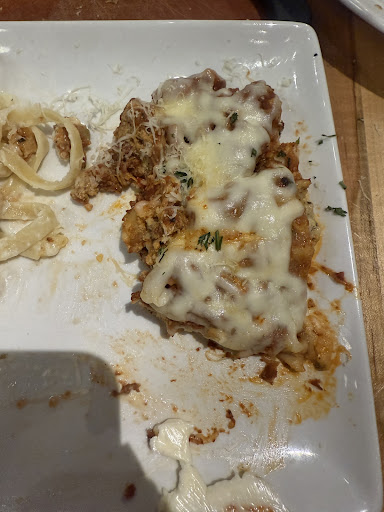 I made a reservation for our large group for an early dinner (3:30 arrive time). We were one of two tables when we arrived. There was only napkins in each spot no cutlery or plates. When cutlery did come some was dirty (also some of the plates under the soup bowls were dirty). When we got there we were given bread but half the loaves were to hard to cut yet alone eat. We had one server for our large group (anywhere else we have always had two servers for the group size) so it made it hard on her to get drinks and refill drinks especially having other tables as well when it got closer to 4:30. Not all of us were asked if we wanted soup or salad those who specifically asked for soup got it but bowls were placed for salads but there was barely any dressing. We asked for a refill on soups and salads with extra dressing but when they finally arrived our meals were already there. (I recognize this isn’t an issue on our server alone but management should have helped her or not given her other tables to set as well). The pasta itself was good.