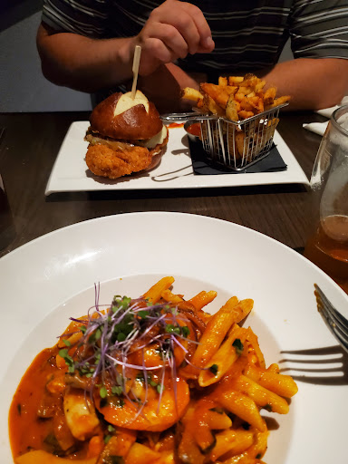 Read moreCame here for my husband's birthday last night and it was such a nice experience! They had the date night special on where you get an appetizer and dessert to share and each get to choose a main course. We got the calamari as our starter and it was really good, flavourful and crispy. I got the bison sausage and shrimp pasta, it was so tasty and the tomato sauce it was in was delicious as well. My husband got the schnitzel sandwich which he really enjoyed. We got the peach crumble for dessert and it was SO yummy. It was tart and also sweet as well. Our server was so nice and friendly as well. Would defintely come back.