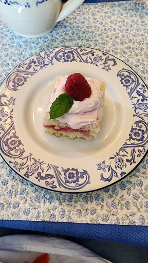Our six course high tea consisted of a tea ofnour choosing. We also had to try the delicous rasberry cordial and Terry's famous rhubarb punch. Next came our choices of tea sanwiches made on home made bread: cucumber, creamy egg salad, and ham. The next courses was a buttery shortbread and airy scone. The courses kept coming with rhubarb tart, choclate eclair, and delectable cakes. She even made a vegan scone and rasberry choclate cake for my mom! Her featured dessert, New Moon pudding, is from Montgomery's own cook book! We felt so spoiled and pampered by the end of our amazing experience. Terry is an amazing cook whose heart has been about tea experiences for the last 20+ years! You definitely do not want to miss this experience! Be sure to book a...