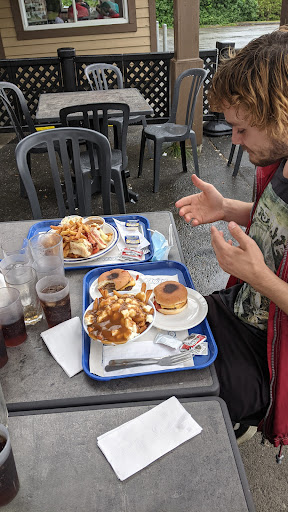 We had club sandwiches, cheeseburgers, poutines, and cheese sticks. Everything was good, nothing to complain about. The cheese sticks were surprisingly flavourful, though I suggest dipping them in gravy than the supplied marinara sauce. Also, the rum and comes were on the weak side but they got stronger the more we ordered. We ate outside on their terrace with our dog, which was great since not many other restaurants have terraces with shelter from the rain. One of the guys we were with ordered extra sauce on his poutine but...