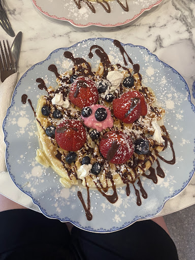 Read moreWhile I was in town visiting a friend, we decided to grab a drink and something to eat for The Pink Cafe. We were welcomed by a gentleman who quickly took our drink order then we sat down and looked at the menu. I will say the menu is very vague and doesnât have much of a description. The prices are more than the prices posted online which we had looked at prior to arriving. I ordered a waffle and my friend ordered a crepe. The service was fast and the staff were friendly. We enjoyed our Iced Caramel Lattes. I thought they gave a generous portion for the price. Although when it came to food I was disappointed. My waffle was very doughy and didnât seemed cooked all the way. My friend said the same thing. I enjoyed the fruit and parts of it were good but overall I wouldnât order it again. I will most likely be back for another beverage but not food. I loved the atmosphere. It felt very comforting and somewhere I wanted to enjoy a...