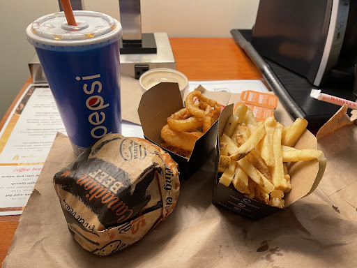 Read moreWe were traveling hwy 11 and stopped here for a quick lunch. Quick it wasnât. I had the crispy chicken and onion rings with Diet Pepsi, my husband had a regular burger with frings ( 1/2 fries 1/2 onion rings) and Diet Pepsi. Our burgers came up and the young girl at the counter fixed them and put them in a bag under the heat lamp. For some reason she had to wait for the bubbles on the pop to go down before she could continue to fill the glasses?!? This process took 15 minutes! Iâm not kidding. When we finally got our food and sat down, we had 2 fries and one onion rings, no frings and burgers were of course cooled significantly at this point. I should have turned around when we came in and immediately used the washrooms, they and the entire place were filthy. Just donât bother. There are other fast food...