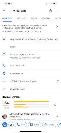 Ā Ā Ā Read moreI regularly stop at Tim Hortons when travelling since there is a consistency in the food and coffee no matter the location; and generally service is good. I stopped at this location mid-morning while driving from western Canada to eastern Ontario. The soap dispensers in the bathroom were out of soap (first time I experienced this at Timmie's). When I went to the counter to get coffees, there were 2 people ahead of me. Both of them only ordered coffee, yet I waited over 15 minutes before I was served. There was only 1 person taking and fulfilling orders at the counter, and his tag indicated he was a trainee. In the meantime, there were 4 staff standing around talking in the area by the drive thru window in addition to the 2 who were taking and fulfilling orders - none of the 4 made any move to help the order counter, notwithstanding that there were close to 10 customers waiting in line for service by the time my order was taken. I do not know if the lack of service is a result of staff apathy, lack of training, management apathy, or simply not giving a hoot about customer service. This is one location I will skip over next time I travel...
