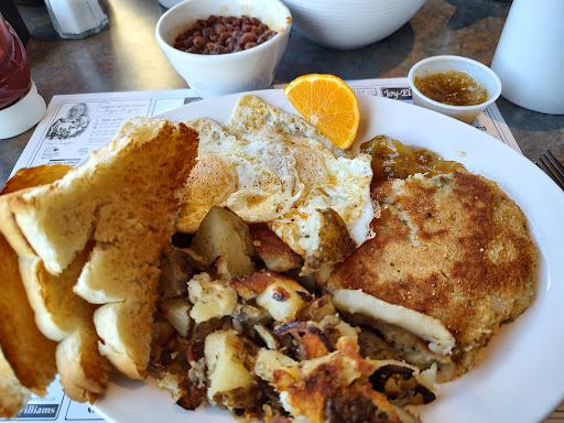 ----------/ I have eaten there three times so far once by myself twice with my spouse. We have enjoyed the food every time and the service has always been good. I love diner style restaurants that have classic country home cooked style food on the menu and actually serve it. I'd have to say Callister's does the best job of that of any restaurant I've eaten at thus far. The extra touches such as homemade bread with Hot Turkey Sandwich meal or the carrets that you can tell were chopped up fresh and not from a frozen bag. My spouse ordered the Eggs Benny and the traditional breakfast another time both of which came with a ham that was clearly sliced from an actual ham and not the highly processed stuff most restaurants use. Eggs have been done to perfection everytime whether fried or pouched. Blueberry pancakes were fantastic! The view from the back window of a farmers field is a great view for the country style restaurant and the music played when we were there was a playlist made by someone with a similar great taste in great older country music. Overall we have really enjoyed our meals there and plan to be regulars. Also as a bonus there have a ice cream booth just outside the restaurant with a great selection...