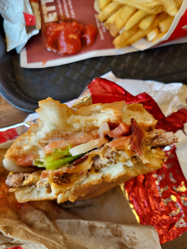 Read moreIf I could give this restaurant zero stars I would. A few months ago we went on a Friday night and the service was just terrible. Our food was bad, the staff were rude and we waited 45 minutes for our food. Today, we decided to give it a try again. It was just past the lunch rush at around 130pm. We ordered 2 meals. The fries for both were cold. My husbandâs burger had a 1 inch by 1 inch piece of lettuce on it and so much sauce that it was almost impossible to eat. The condiment station is located directly beside the garbage cans (nothing like getting ketchup next to over flowing garbage cans) so I asked the staff for some ketchup packets. The ketchup dispenser was covered in crud and clearly hasnât been cleaned for a very long time. The gentleman behind the counter rolled his eyes so hard at me.