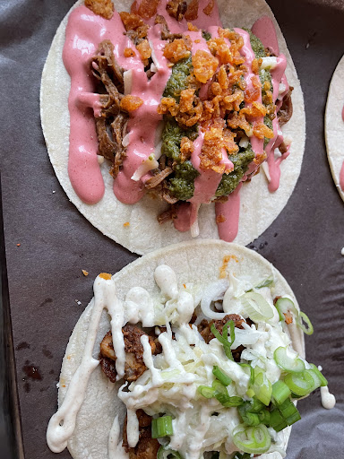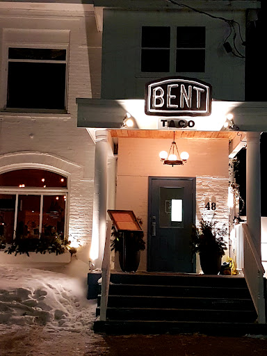 Read moreSituated in a petite, ground floor of an old house in downtown Collingwood, opened in late 2016, Bent Taco is like the new kid on the block with a breath of fresh fusion (Mexican- Asian) vibe. You walk into the front area with a few tables and the bar on one side. Some more seating in the middle, and finally a long table at the end of the alley just next to the tiny open kitchen counter. The place is small and crowded seating arrangement and yet somehow seem to make things work with upright service and seamless work out in by the three partners George Russell, Nick MacGregor and Dan Lennox. It's perhaps Macgregor, the trained chef with first-hand experience from Mexico who brings in a twist to the traditional items. Walls with white paint and graffiti patterns, cookie sheet style serving dishes, and low lighting is meant to reflect the complex power line compositions you see in suburban Mexico. The place definitely measures up to expectations.