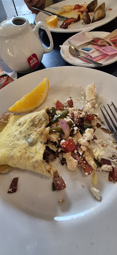Read moreHad lunch here based on Google reviews. Promptly seated in a booth that offered privacy, tables were also available but we chose a booth. Drink orders taken quickly (hot apple cider with cinnamon stick $5, delicious). My wife ordered the Montreal Smoked meat sandwich ($18) and I couldn't decide so I asked April our delightful smiling server what she recommended. She asked if I was hungry to which i said yes so she recommended the Quesadilla (with chicken or steak) $22. She added that the steak was striploin which I was pleased to hear as some restaurants will use a cheaper cut of beef. I scoffed when April said she has never seen anyone finish it as it is very filling. The food came in good time, hot and looked and tasted delicious. It was beautifully toasted and came with sour cream and a nice tasting probably home made salsa as it tasted fresh. My wife's Montreal smoked meat was piled high as promised with pickles and choice of mustards. Reasonably priced , clean and we enjoyed looking at the art work for sale on the walls while waiting for our food. If lunch was this good we look forward to returning for breakfast and dinner. BTW, April was right and I needed a box to take home the third quesadilla! Highly recommend. An easy 5 star, well done and thank you for a great...