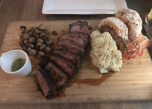 We waited almost an hour for our main course. Medium rare steak and medium cooked lamb. The steak comes out charred on top and is very mediocre. More medium- medium well but if the steak is good I am not very fussy. The $60 steak is not as good as the $8 steak I made from the grocery store a few days earlier The lamb is a dud. The lamb comes encrusted but just is the most tasteless piece of lamb we have had in our lives. Sauce might have helped but there was none. The sweet potato fries were excellent as the side and we ate them all.