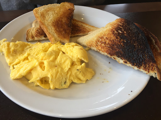 My wife’s English muffin was burnt so bad she couldn’t even eat any more than a couple bites and Her hollandaise was runny. Our sons plate was soooooo hot we had to wait nearly 5 minutes before it was safe for him to have around him to eat. His pancakes were dry and the top lair was crispy. Clearly his plate was sitting in the window for quite some time. My moons over hammy was the best of the 3 meals and even then it was mediocre. I asked for well done hash browns and had received luke warm soggy shredded hash browns. My “toasted” sandwich was soft and limp. The sourdough was so weak you’d think it was plain white bread.