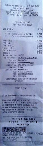 Les petits déjeuners y étaient servis toute la journée quand nous y étions pour notre repas du midi en ce 17 septembre 2020 autour de 13h30. Nous avons pris un 12 pouces à deux en petit déjeuner soit bacon, œufs et fromage ($6.79) avec un ordre de 6 morceaux de petites patates rissolées ($1.59) pour un total de $9.64 avec taxes. Nous avons été très agréablement servis par un couple ultra sympathique et efficace. Ce qui fait le grand charme de ce Subway est le bâtiment dans lequel il se trouve soit une maison avec une belle architecture de style rusticité moderne. Il se démaque ainsi en beauté des Subways habituels. Nous avons pu savourer le tout à l’intérieur. Les toilettes étaient accessibles au public ce qui n’est pas toujours le cas en ce temps de supposée pandémie. Tout était bon et bien présenté. Nous avons 6 photos à vous proposer dont une du reçu descriptif de la transaction. Nous recommandons très fortement ce super Subway en espérant que ce sera ce couple sympathique qui y sera encore quand vous y serez.