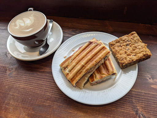 We ordered a latte and cappuccino and we both agreed that both drinks had very faint coffee taste and rather taste more like just hot milk. Food-wise they have the usual offerings of muffins, wraps, sandwiches, bars and the likes, and what looks like some crostata from Gabi&Jules handmade pies if you've ever been there. The one thing that they do right here is how they warm up the food. Some places would just nuke them in the microwave and things get soggy and gross. At least they prepare your order correctly so the wrap that we got is properly pressed and the crostata keeps their crisp exterior which makes a huge difference.