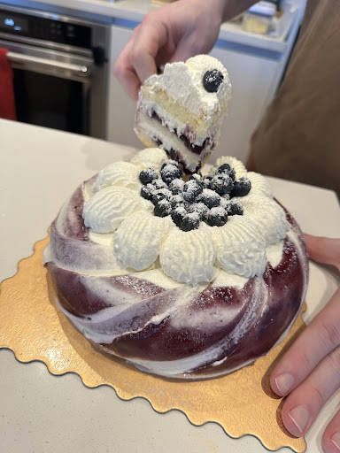 This is a Korean bakery in the Hanin village, a plaza with bunch of Korean stores. It's probably why when you walk in here, you might wonder why am I here if you aren't Korean or don't speak Korean. However, if that's the reason you don't want to try the bakery , know that some ladies working at the shop can speak English. Even if they do not, you just might want to give this place a try. Some of their baked goods might surprise you how good/fresh they are. Pretty much what happened to my MIL visiting us from Ottawa. Their cream puffs and blueberry cake were her all time favourite. Their Korean drinks are good too. Might want to skip the pizza styled baked goods though.. unless they are your thing. I keep coming back here for their blueberry cakes . Just call ahead to reserve one for pickup about a week ahead. It'll be very fresh. The only thing is they don't do much customization so they might do a little writing but that's about it. If you tell them it's for a birthday, they'll give you a little thing to stick on or a few candles. Anyway. Prefer these cakes over h mart or tnt...