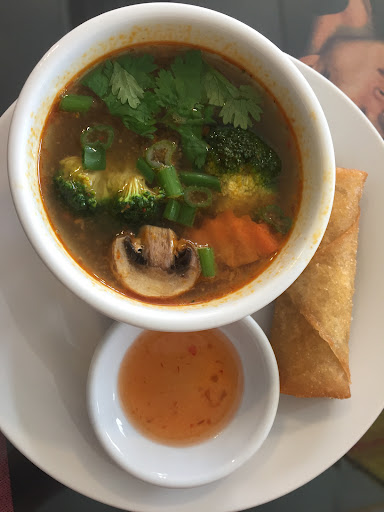 This was my second time eating here. First time I heard about this place was on Google or Yelp; their ratings were phenomenal and I was told that it was owned by a mom and pop. I love supporting small businesses so we popped in one night for dinner. The wife was very nice and she was trying to accommodate us because we brought our child there. As for the food, well it was not memorable and kind of bland. I've been spoiled with really good authentic Thai food before so I guess it's hard to satisfy my expectations. I just couldn't taste any spices in their food. Anyway that was more than a year ago. So few days ago, I decided to give them another chance. I ordered take out through DoorDash. The food arrived quickly! I had the lunch special chicken green curry with rice, salad, soup and spring roll. When I opened the box, there was a piece of thin black hair on the rice. I'm not too disgusted by this but still. The salad was wilted and warm because they put them in the same box as the rice. Spring roll was big. The soup tasted like sour veggie soup; I just took a sip and put it away. Keep in mind, I LOVE Thai soup but this time it tasted like sour water with no meat/bone/veg flavor. The green curry was diluted, it came with lots of veggies and only few pieces of chicken. I felt kind of ripped off but I guess for the price I paid I can't complain. But I would rather spend a couple dollars more for quality and quantity. Maybe they should not offer soup and just give me more chicken. I'm kind of sad that this place is a disappointment for me. But it seems like they're doing well so...