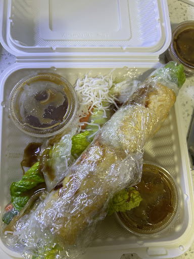 Read moreHorrible service, horrible people, always mess up the order, they never get an order right, donât go here unless you want to be treated poorly and have the wrong food and then and itâs cold. I even asked them what would help them so that they would stop making my order wrong? and the guy at the back table cleaning said to speak Vietnamese. they hate white people and I honestly wouldnât be surprised if they did something nasty to our food this time, there is no other reason for it to take 30 minutes when theyâve made a mistake on your order to make a fresh spring roll. Itâs not like they had to cook it. Donât go here unless you want to have a horrible everything. And look at what I just opened, the sauce is everywhere, half full, lettuce, and noodles thrown on top of the wraps. I am not eating this at all. !!! Totally and completely disrespectful and inconsiderate. I honestly think somebody needs to call the health department...