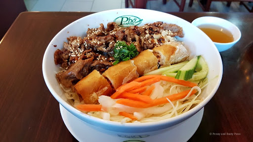 As it turns out, I came back about 4 months later and ordered the Marinated Lemongrass Pork Slices and Fried Spring Roll with Veggies ($11.75) or Bun Thit Nurong, Cha Gio. The crispy spring roll was made with a wonton wrapper and the bowl was fairly big (with lots of shredded cabbage underneath). By itself, it lacked a bit of flavour but it was easy enough to kick things up a notch with the tableside sauces.