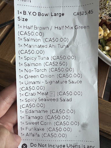 Ordered large BYOB today, and added extra salmon based on my experience last time. But the amount of total protein I got is equivalent of one or two scoop i get in different poke store. I tried digging through the salad to see if there are more underneath but what you see in the picture is all I got .. :(