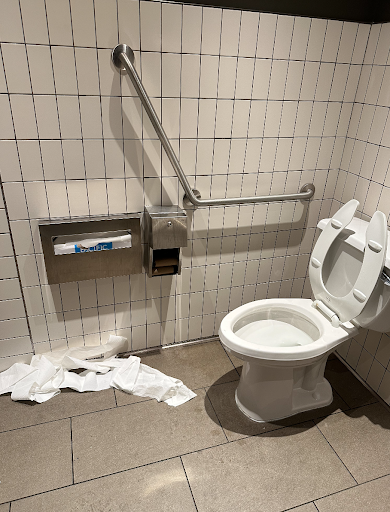 During a quick bathroom break that lasted less than five minutes, both restrooms were occupied. A couple waiting outside decided to leave after only about 30 seconds of waiting. What shocked me was how differently the staff treated their impatience compared to mine.