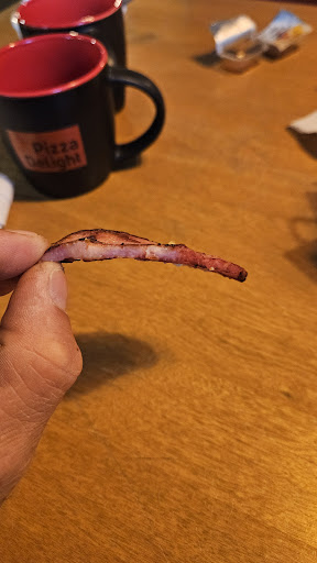 Read more45 minute wait for a pizza, didnât look in the box until I got home an hour away. Pizza comes with almost no cheese on it, very poorly made, with a short blonde curly hair baked into the bread. Didnât get home til late and was very disappointed in the pizza so I decided Iâd let them know the next day as I have to wake up very early. I called to let them know, she said âwe are open til 11, you should have called, we wear hair nets and no one handles the pizzaâ ⌠She didnât ask about the hair, didnât say sorry, repeated their policy about returns 2x said to get a refund I need to return the pizza. I wasnât even interested in a refund!! I live far away and wasnât making another trip in town over a free pizza! I used a free pizza coupon, I donât know what a refund would even look like, i didnât want the coupon nor another pizza, I just wanted to let them know they were putting out poorly made hairy pizzas and they didnât want to hear it. Not a great attitude. I wonât return, not even if I get a free pizza coupon. If a customer is trying to improve the quality of the goods you serve, the least you could do is ask what the hair looked like so you can make sure the employee with short, curly, blonde hair is wearing their hair net at...