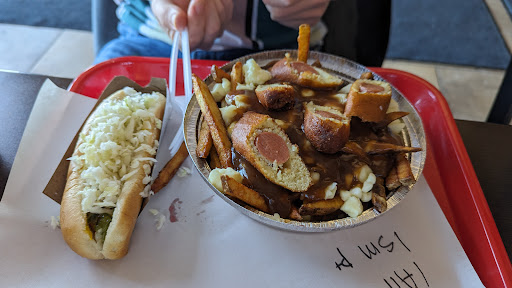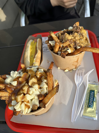 Fun vibe. Very busy place right next to the water. The food is very classic Montreal fast food: somewhat rubbery burgers with a ton of yellow mustard and coleslaw, and poutine with cheese curd and brown beef gravy. Not exactly my taste personally, but still good. If you miss the flavor of those old Montreal burger places that have largely disappeared over the last 20 years you will love Frite a Brigitte. Grab some food to go and hang out in the waterside park...