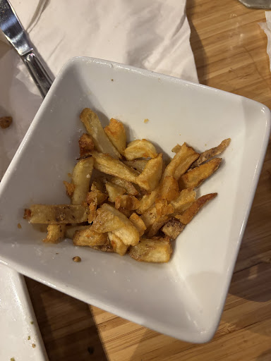 It could do with a makeover, perhaps. It's probably nicer when the patio is open. Was last here over 10 years ago and seem to remember it being a little fancier. It might have just been me and the difference between daytime and nighttime meals. Seems they have embraced the sports bar theme and have a few good specials on game day, including a contest where you receive a puck with a players number, and if he scores, your bill is free. Fair happy hour prices on $5 high balls, $8 doubles, and $6 beers, in early 2024. Check on line for current hours. Went in for a family lunch with both an adult child and 3 y/o child. They seemed short staffed, although it was about 4 pm on Saturday. When we did get seated, they were quick on the booster seat and many extra coloring pages to go with the crayons. Once we were seated, service improved, and the wait staff were polite and friendly and quite patient with our table. The food, although perhaps a little pricy, but isn't everywhere nowadays, was fairly good. Definitely, quality ingredients were used. The portions weren't huge but not tiny, small either. Everyone was happy with the food we ordered and said it tasted really good. The menu, however, was quite limited. Our adult son mentioned it more than once. It was also he who complained about a bowl costing $29, but he is still young and learning. He did enjoy the jumbelia bowl though even if it wasn't spicy enough for his taste, but our waitress was quick to bring everything he might need to fire it up a few notches. We did not stay for dessert or linger for too long due to the 3 y/o being autistic and had to sit still. Overall, I like Fluid and would recommend it to others. I'm not sure about for a family, but for a date night or a get-together w/ friends, for sure it's an upscale, sort of hip place. I'd like to come back in the summer and edit my review, so check back...