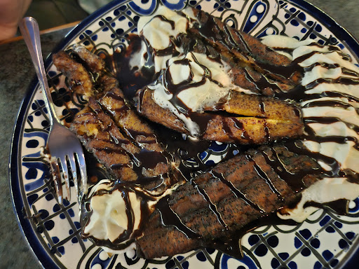 Dessert was delicious!! The deep-fried ice cream shell was amazing and the plantains in chocolate sauce were yummy.