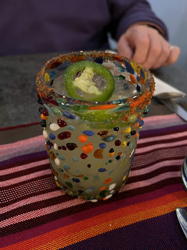 We started our meal with margaritas and a variety of appies. Mum had the lime margarita, Stepdad chose the spicy version, and I had a virgin spicy. The drinks arrived in cheerful, sturdy glassware we loved, and after Mum had sent hers back to have the salt "cleaned off the rim", Stepdad and I had our first sips. The spicy margaritas were delicious: elevated by fresh ingredients (thin slices of lime and jalapeños, and muddled seeds for heat) and the tamarind and chili mix on the rim added yummy complexity. Mocktail drinkers will understand how much it means to be served an interesting and "adult" tasting beverage while others are drinking cocktails -- this one was just great.