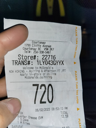 Read moreThe service at the McDonald’s on Ryan Road is not up to par. It’s slow, not prepared for rush hour. On Friday a friend and I went. I ordered first and he ordered after. There were a couple of people ahead of me and three or four behind me. All behind me were served including my friend. 16 minutes later I’m still waiting. This MacDonalds is either understaffed or not organized for servicing the public. My friend finished his dinner and I’m still waiting. I finally went up and asked for my drink. I did say I’d been waiting 16 minutes. ( according to my receipt). Another 5 minutes went by and I asked for a refund. Which I was given and I left. I thought I’d try drive-through tonight and again there was a wait for food. What is going on with this MacDonald’s. Either hire more people for the rush hours or teach the staff to be more on the ball. And before you question me...I used to work at Courtenay and Walmart MacDonald’s a number of years ago. And it’s about timing and organization and making sure the teenagers can work and talk at the same time. This includes...