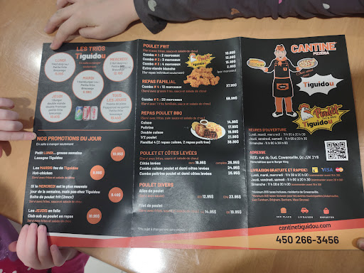 J’ai découvert Cantine Tiguidou à Cowansville récemment, et j’ai été agréablement surpris par la qualité de la nourriture et la gentillesse du personnel. L’endroit est simple, chaleureux, et parfait pour un bon repas rapide sans se ruiner. 🍔 Leur poutine est délicieuse, bien garnie et savoureuse. La pizza et les burgers sont aussi très bons, avec des portions généreuses. Service très sympathique, toujours avec le sourire. Le propriétaire, Hugo, est vraiment accueillant. Prix très raisonnables pour la qualité offerte. Demandez la sauce à part si vous prenez une poutine pour emporter, ça reste meilleur à l’arrivée. J’aimerais juste voir un peu plus d’options végétariennes sur le menu.